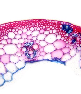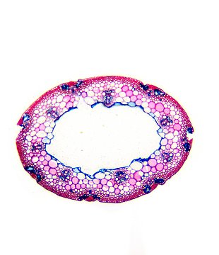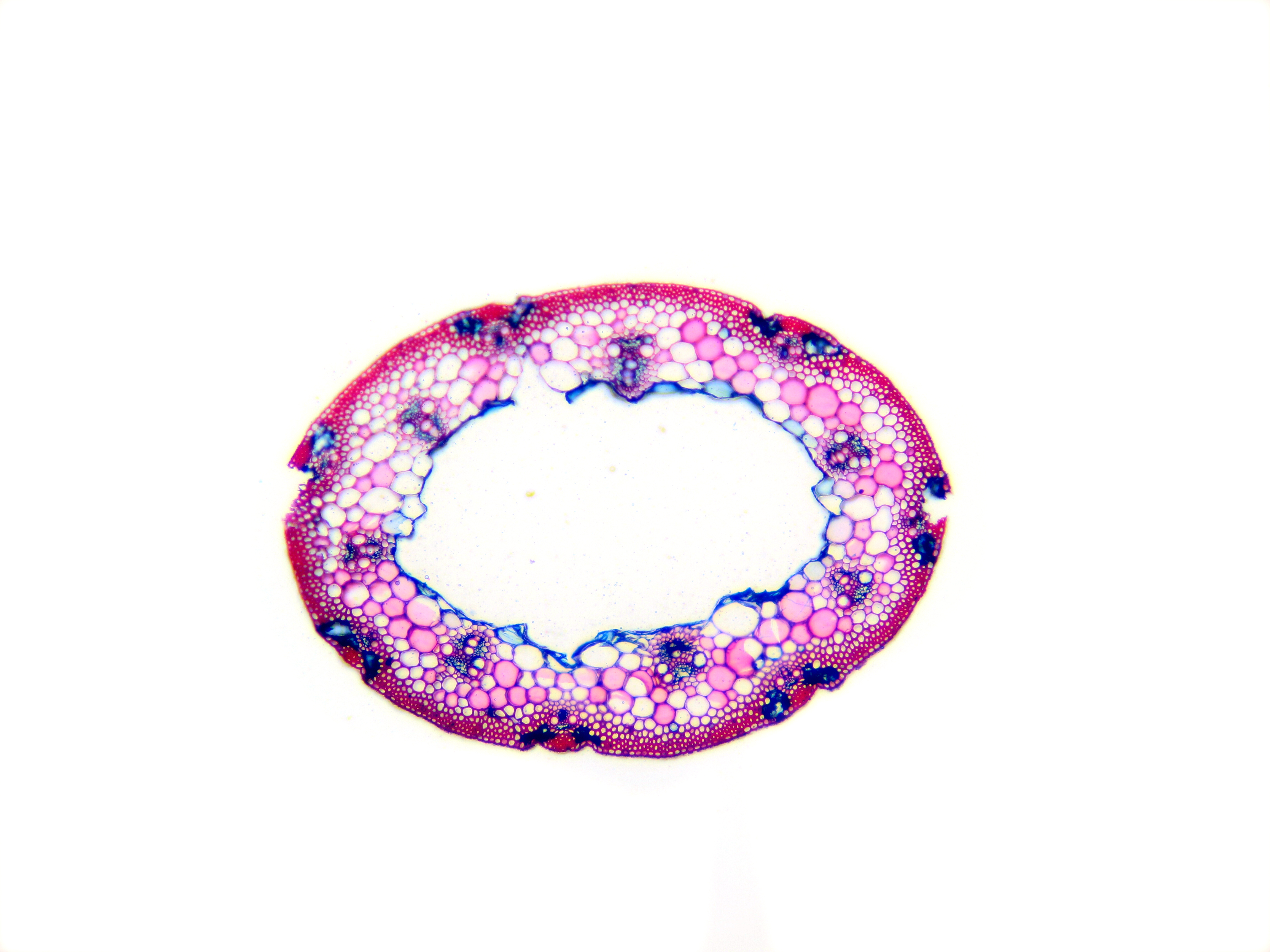 Culm-diameter 1-2 mm, wall large, radius of culm in relation to wall thickness 1:0.5. Outline circular with a smooth surface. Culm-center hollow and surrounded by a few thin-walled, not lignified cells. Epidermis-cells thick-walled all around. Large vascu