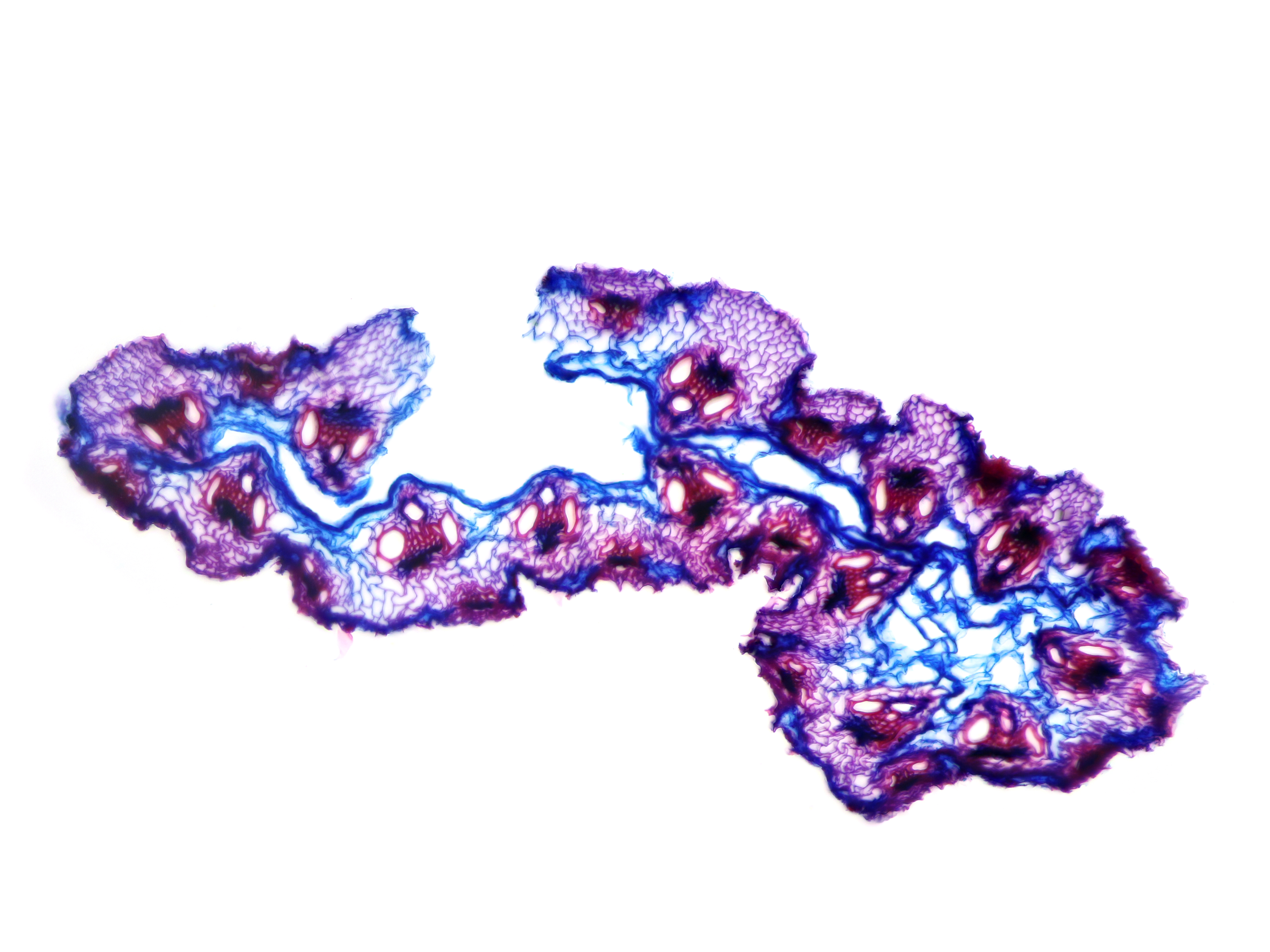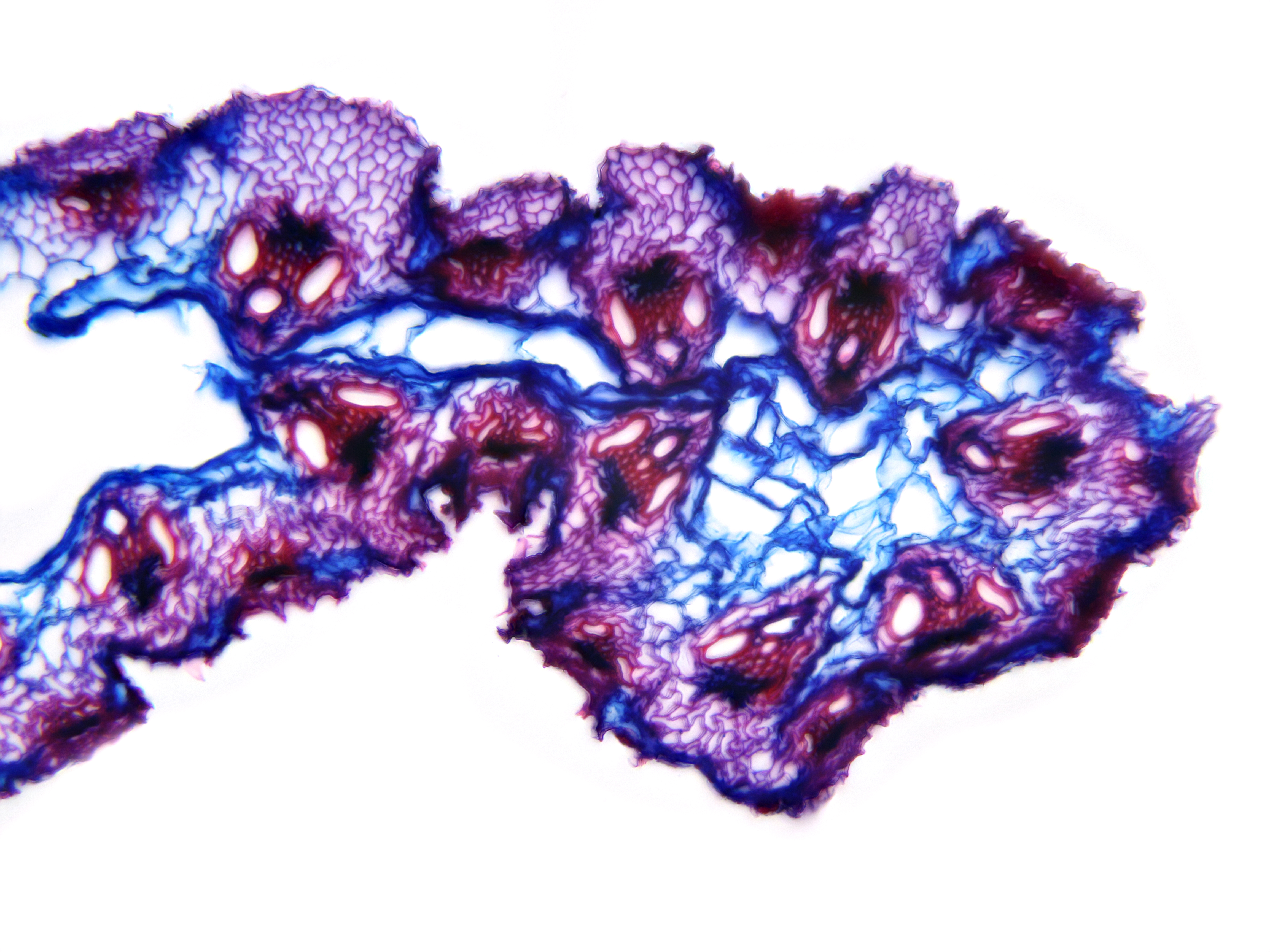 Culm-diameter 1-2 mm, wall thin, radius of culm in relation to wall thickness approximately 1:0.25 or < 0.25., Outline circular wavy. Culm-center hollow and surrounded by a few thin-walled, not lignified cells. Epidermis-cells thin-walled all around. Larg