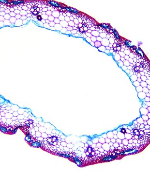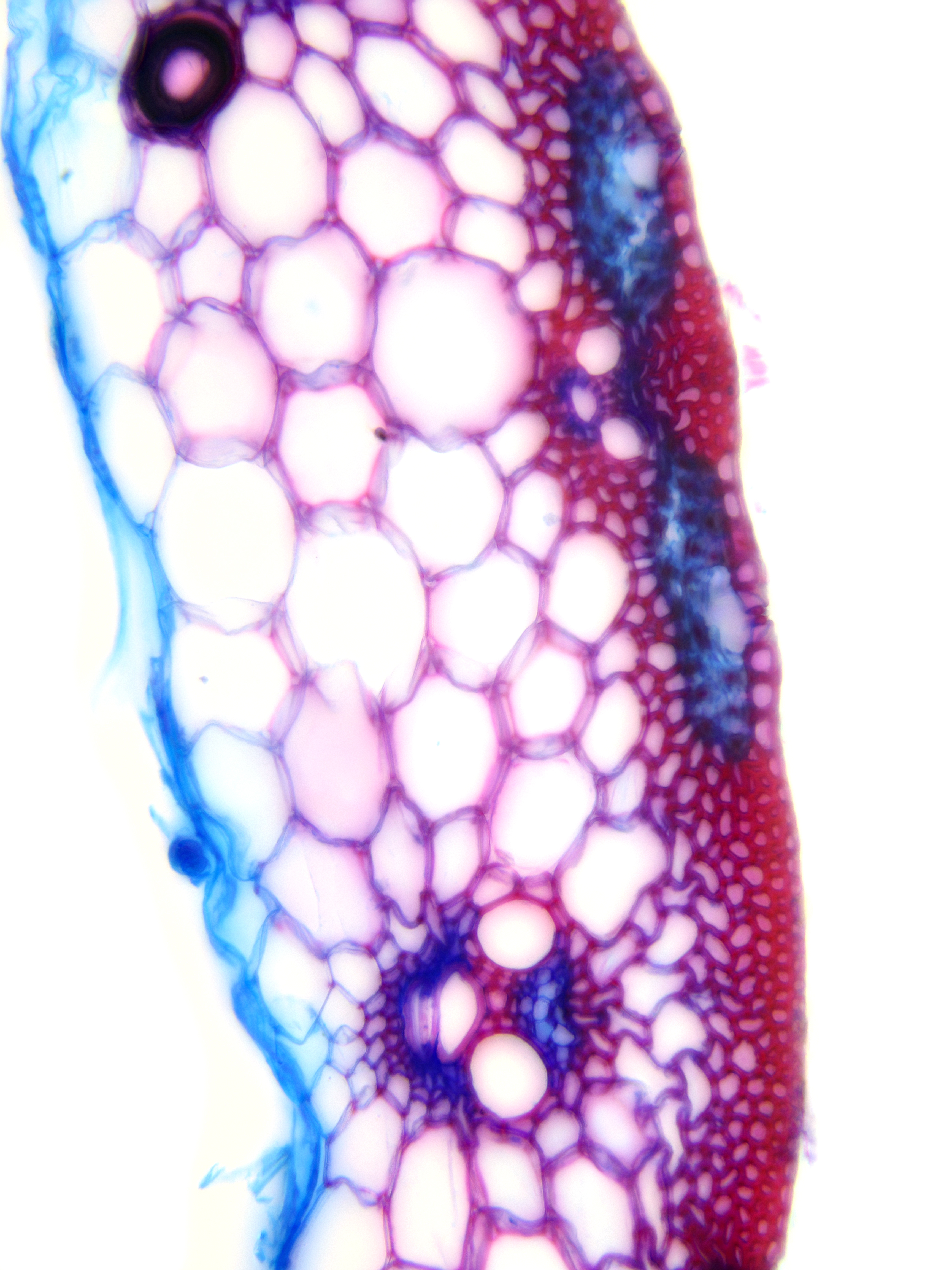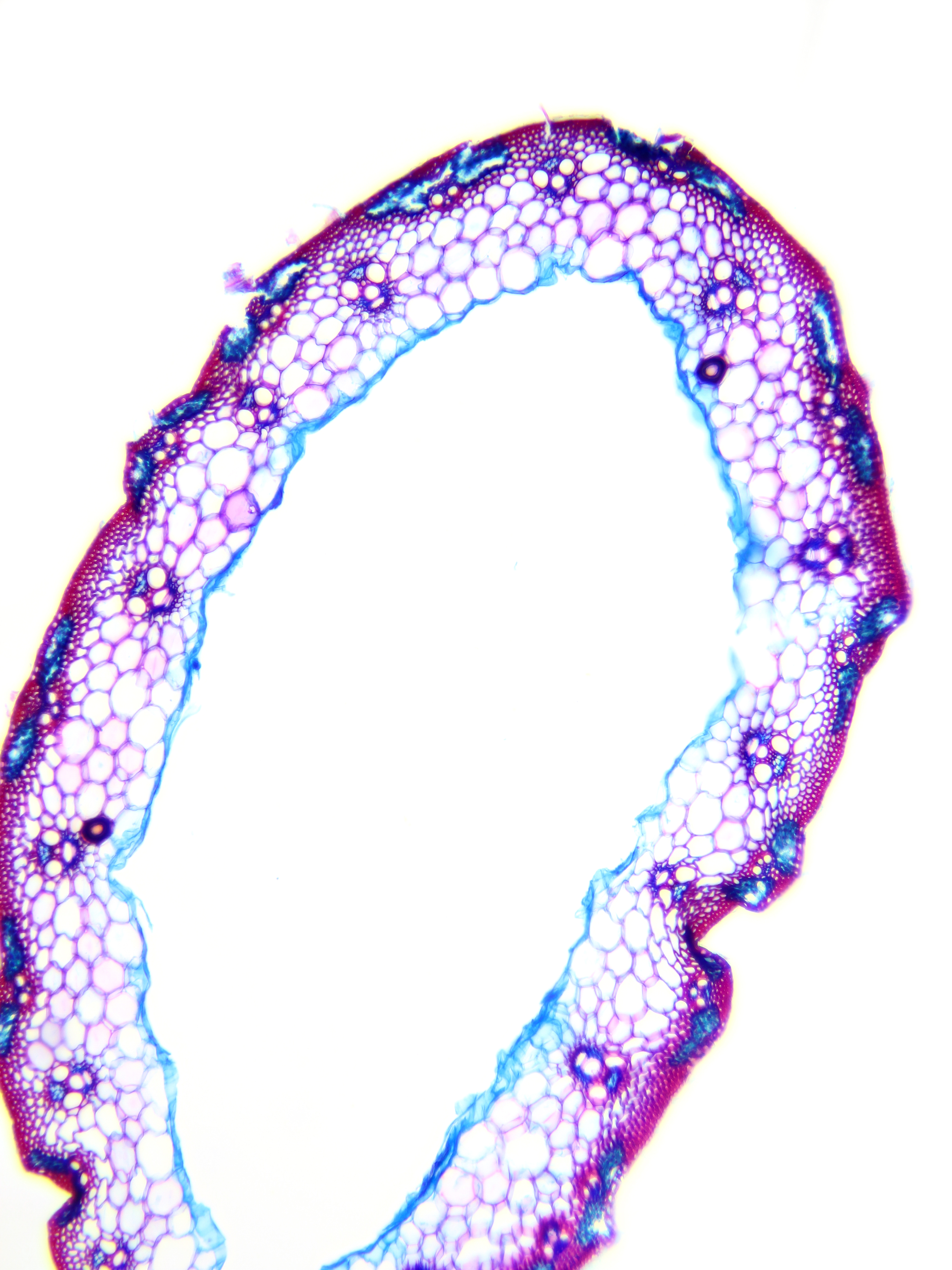 Culm-diameter 2-5 mm, wall thin, radius of culm in relation to wall thickness approximately 1:0.25 or < 0.25. Outline circular with a smooth surface. Culm-center hollow and surrounded by a few thin-walled, not lignified cells. Epidermis-cells thick-walled