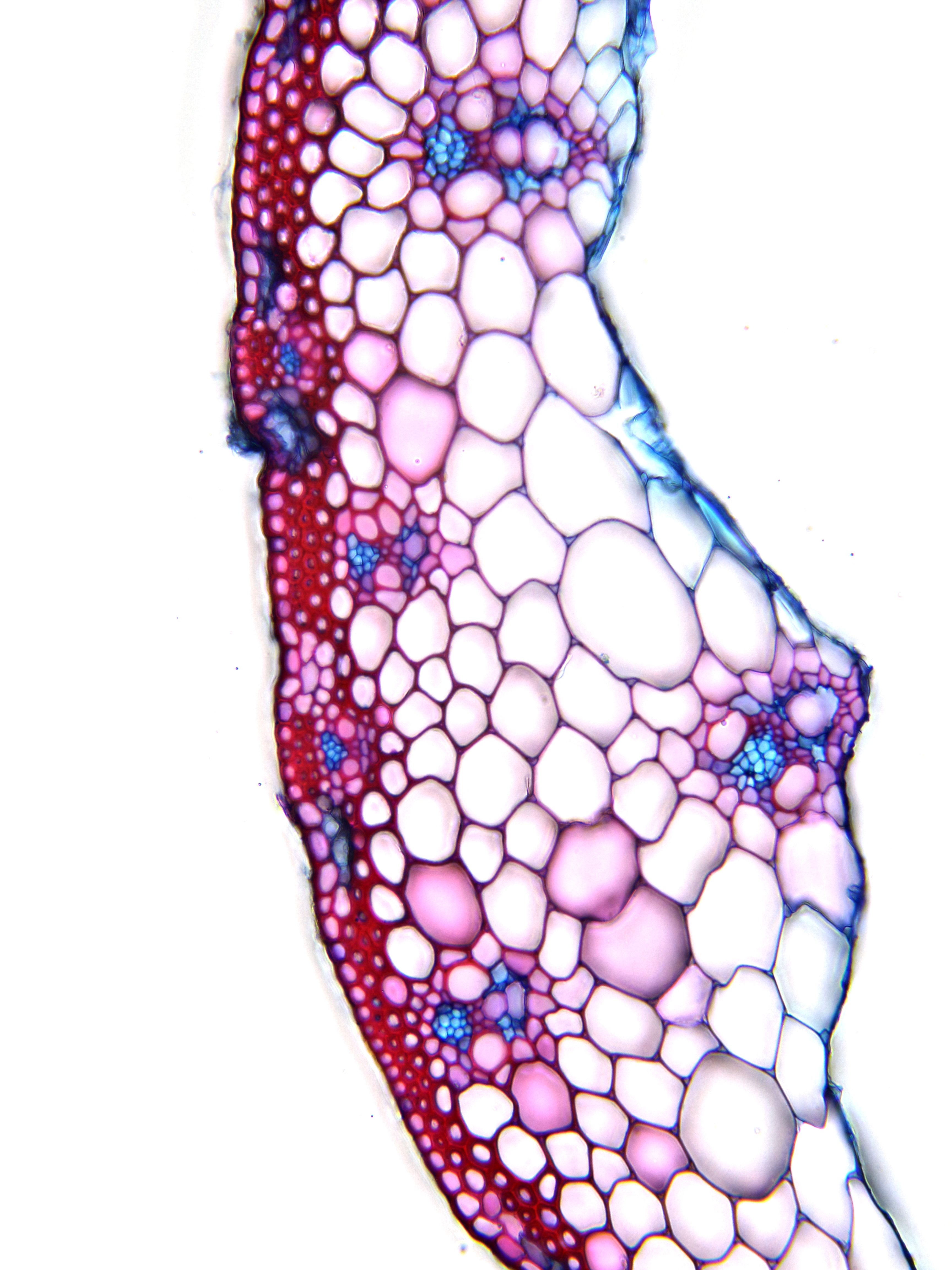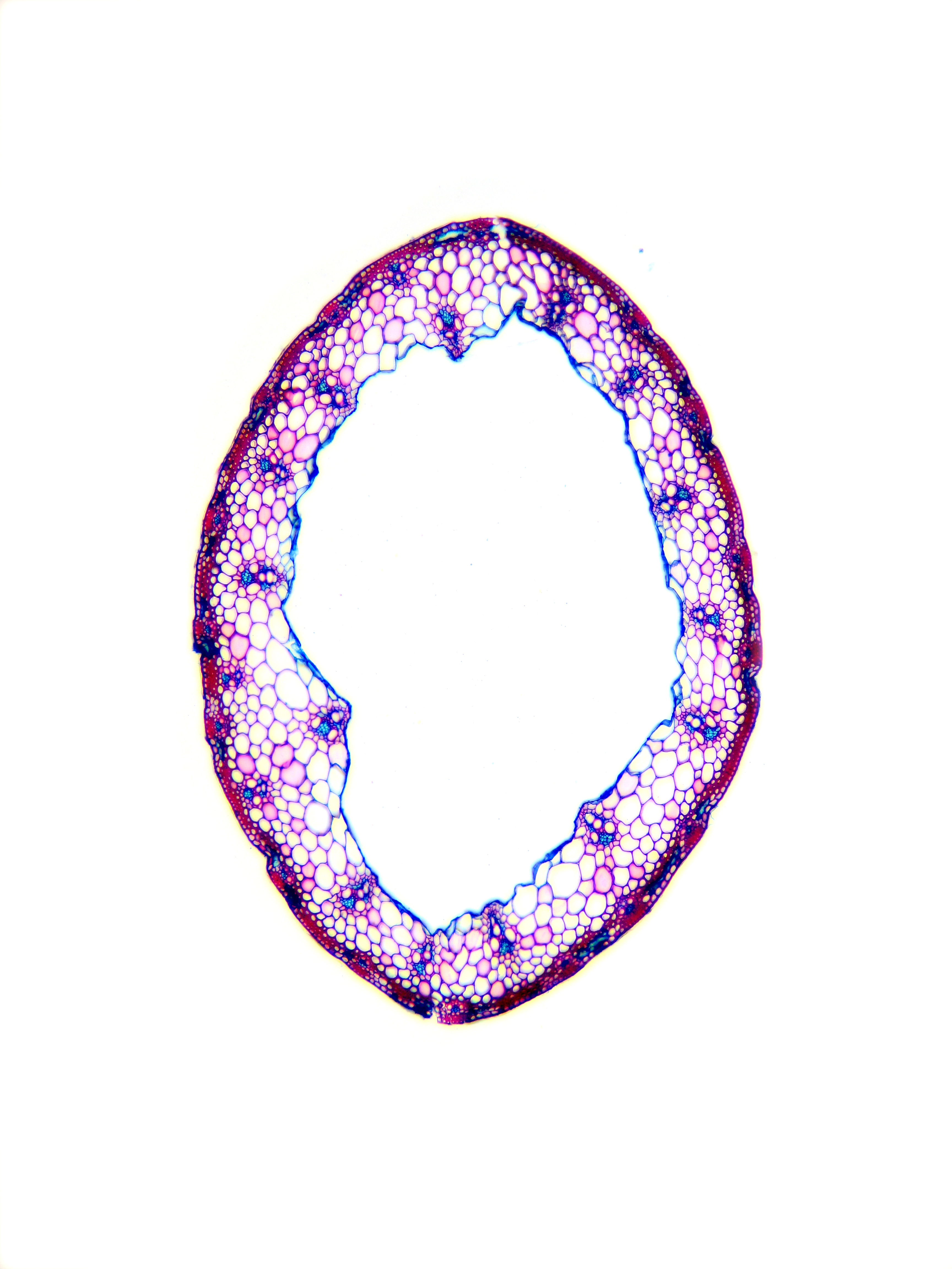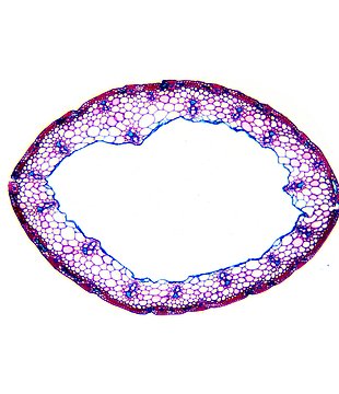 Culm-diameter 1-2 mm, wall thin, radius of culm in relation to wall thickness approximately 1:0.25 or < 0.25. Outline circular with a smooth surface. Culm-center hollow and surrounded by a few thin-walled, not lignified cells. Epidermis-cells thick-walled