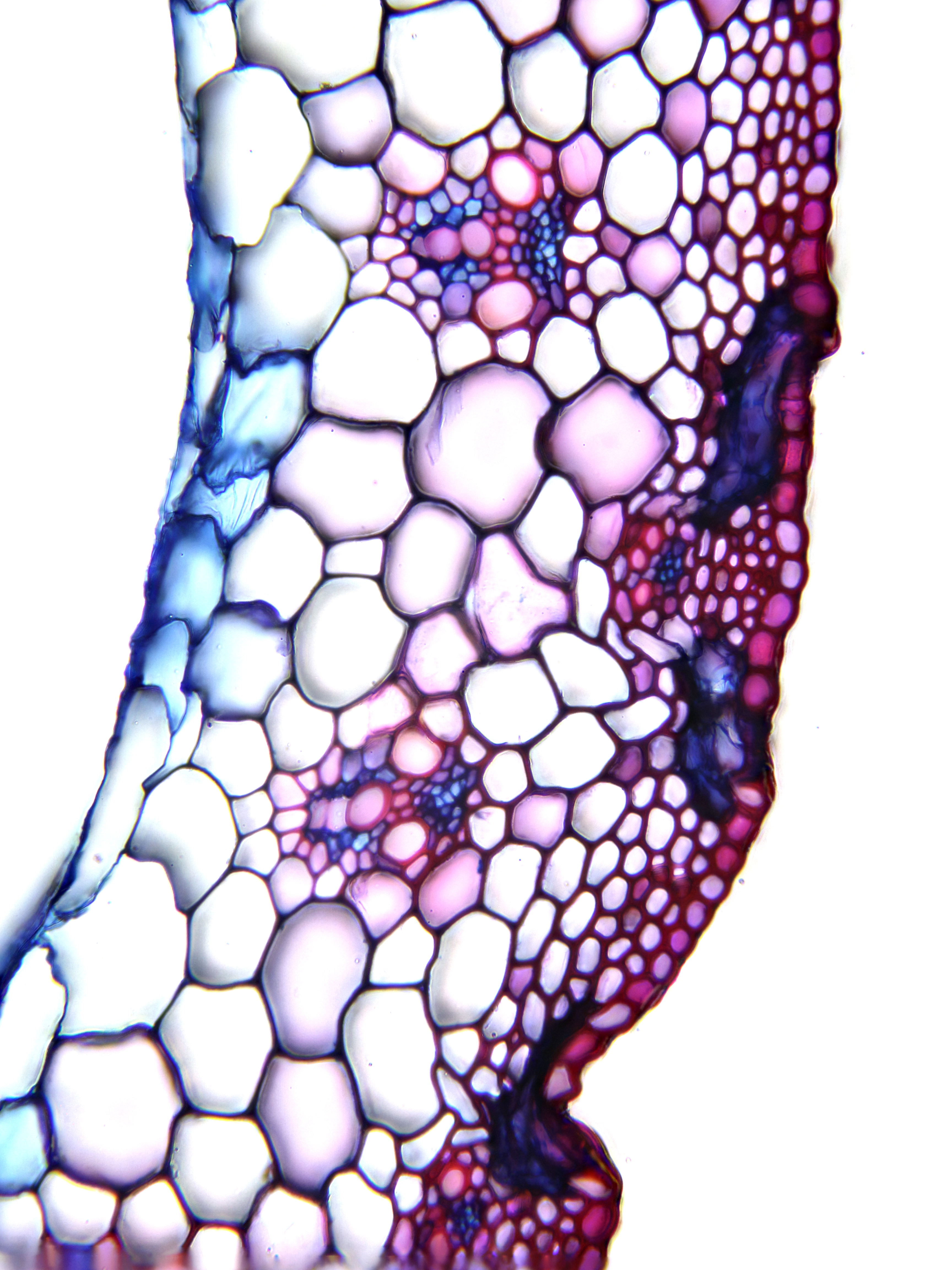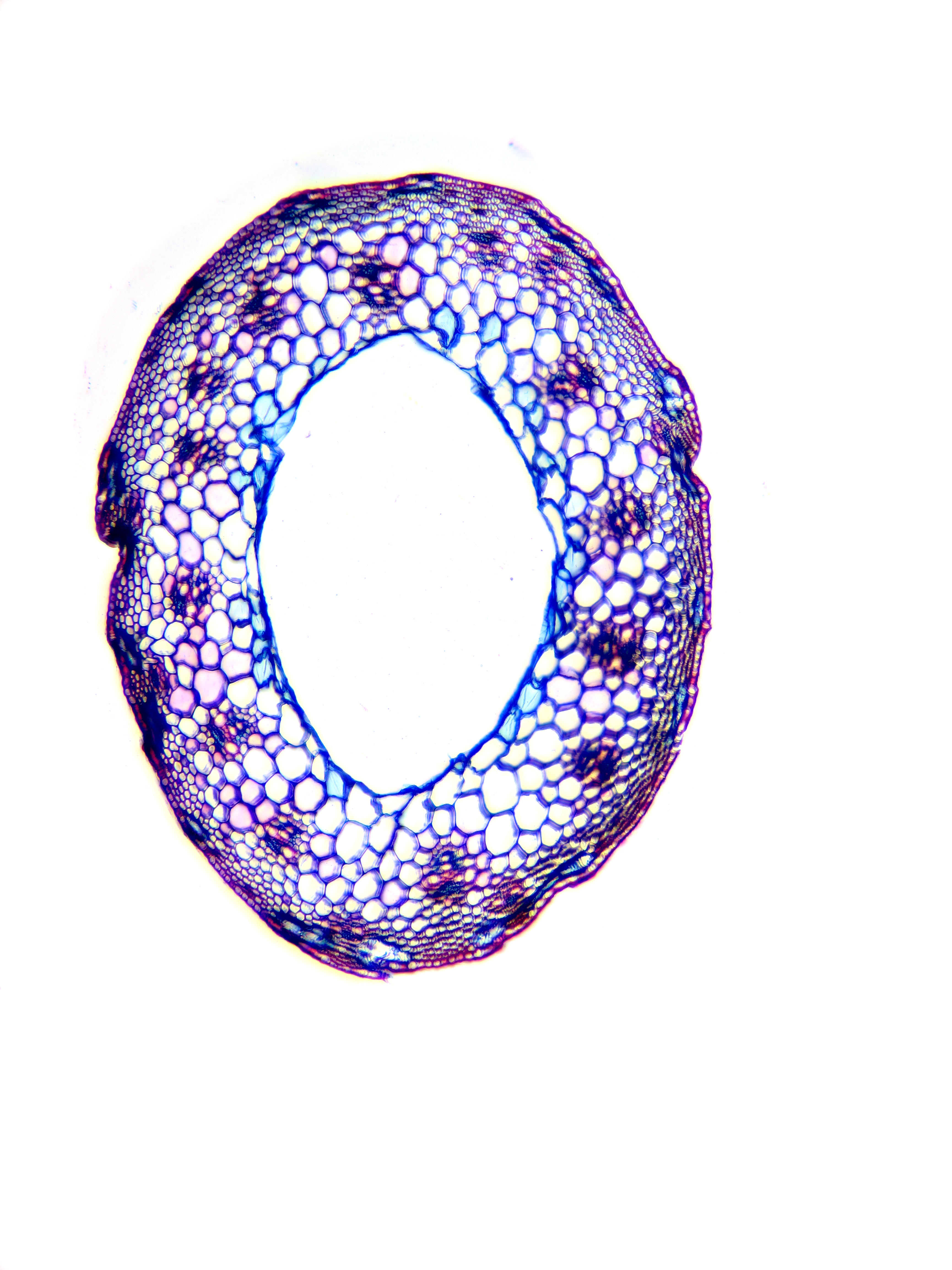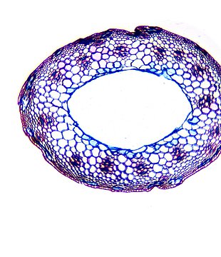 Culm-diameter 1-2 mm, wall large, radius of culm in relation to wall thickness approximately 1:0.5. Outline circular with a smooth surface. Culm-center hollow and surrounded by many large thin-walled, not lignified cells. Epidermis-cells thick-walled all