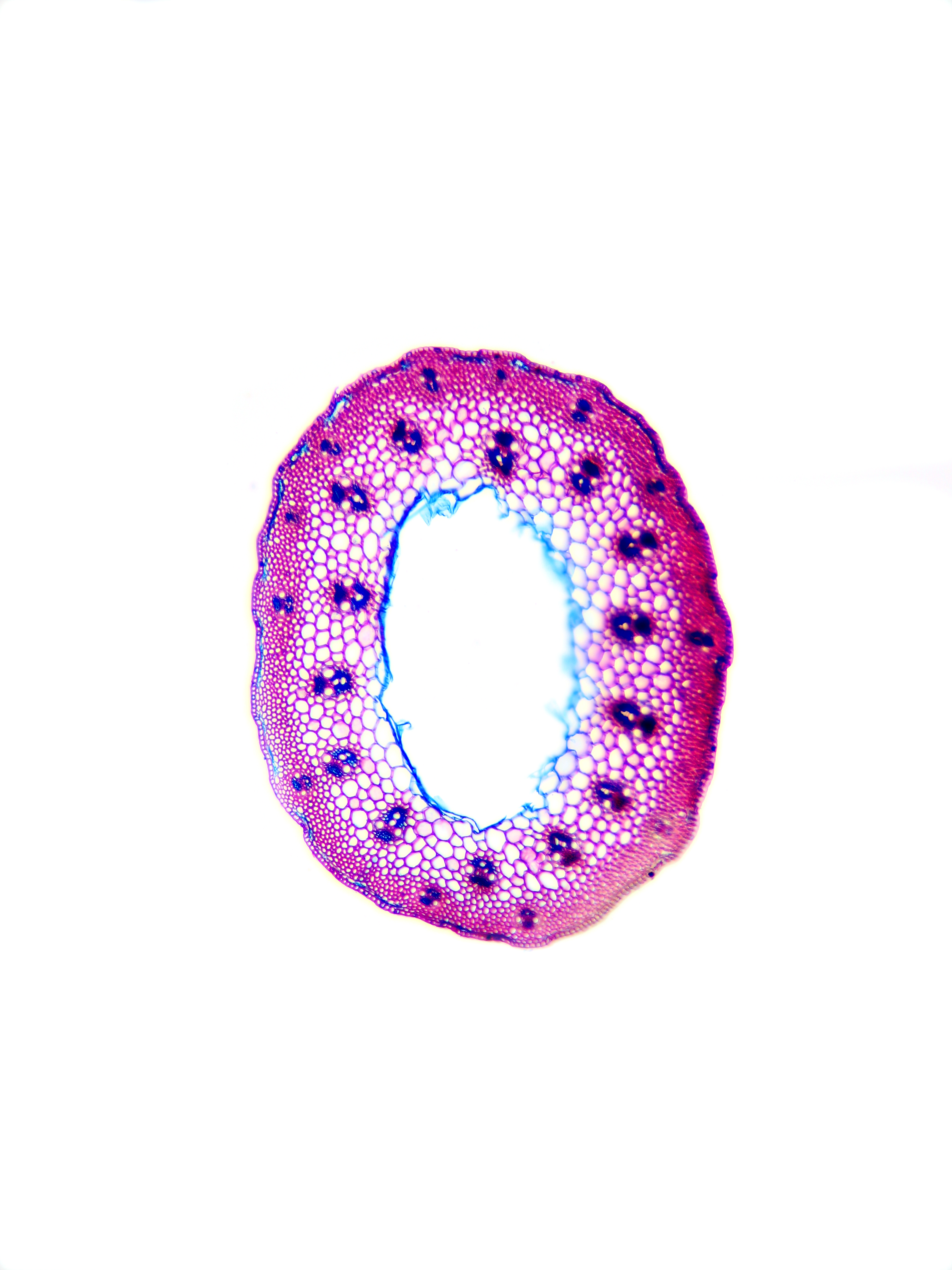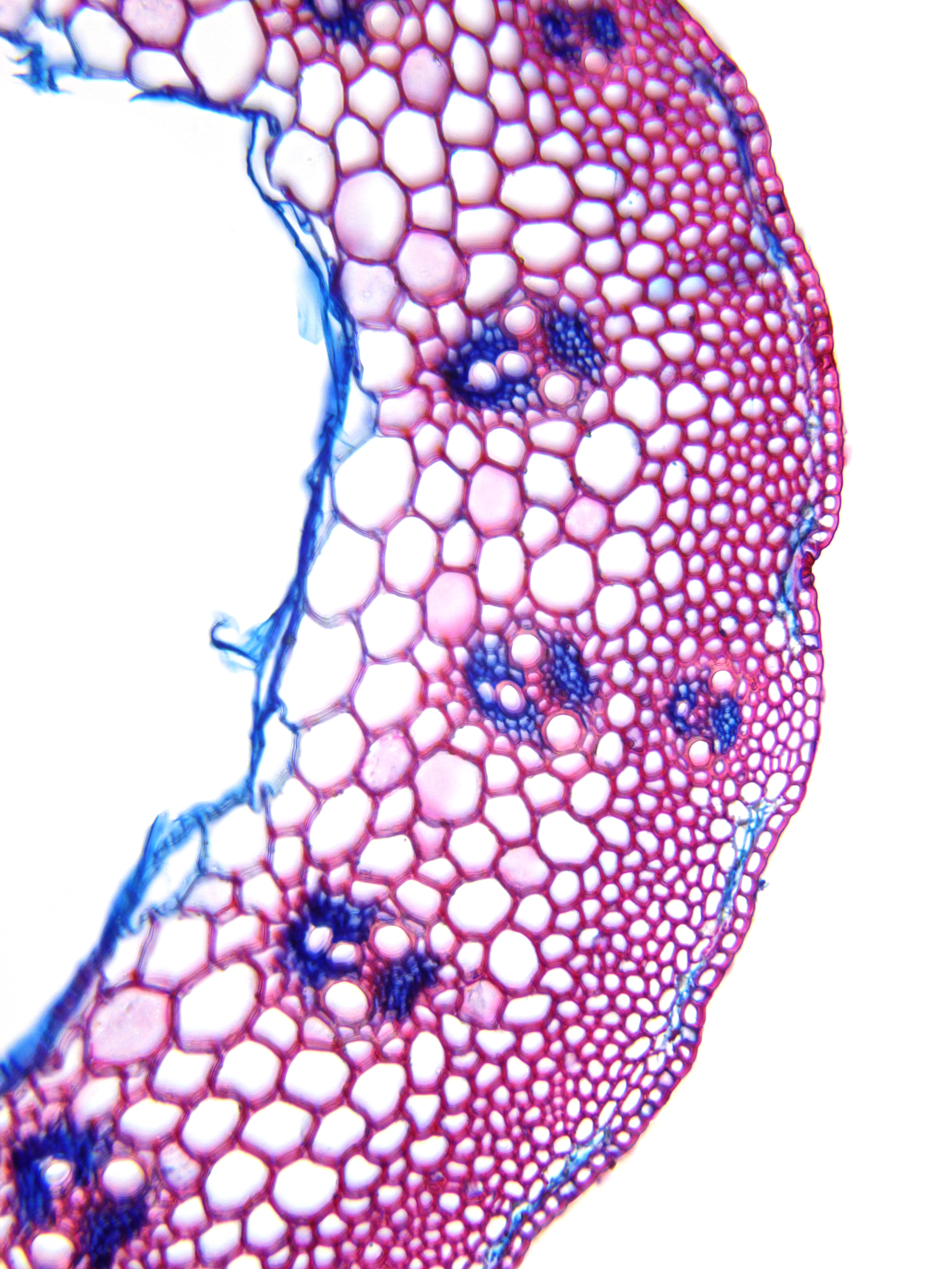Culm-diameter 1-2 mm, wall thin, radius of culm in relation to wall thickness approximately 1:0.25 or < 0.25. Outline circular with a smooth surface. Culm-center hollow and surrounded by a few thin-walled, not lignified cells. Epidermis-cells thin-walled