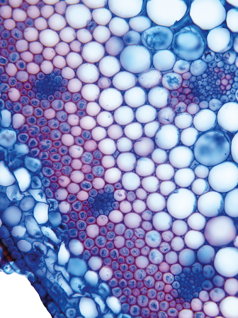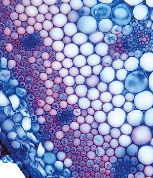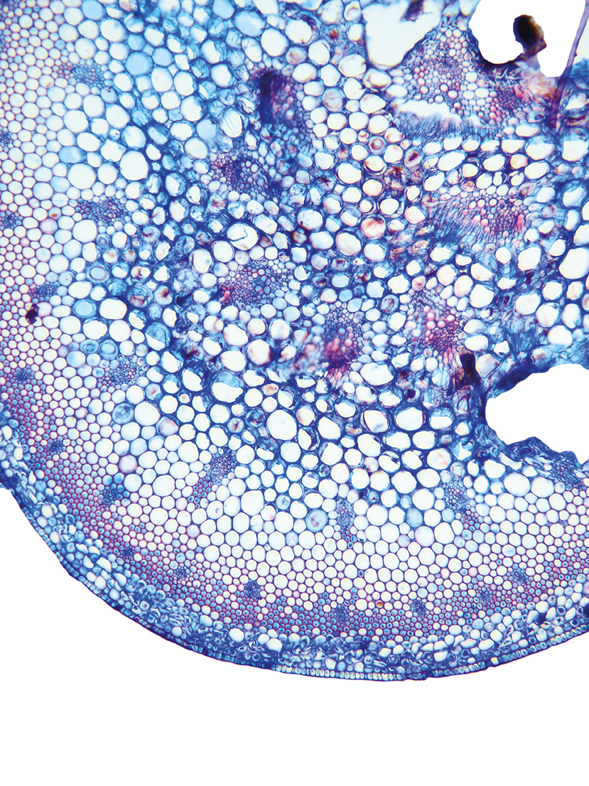 Culm-diameter 2-5 mm, center full, radius of culm in relation to wall thickness 1:1. Outline circular with a smooth surface. Culm-center full, containing unlignified cells. Without cortex/cylinder separation. Culm without endodermis but with a sheath of l