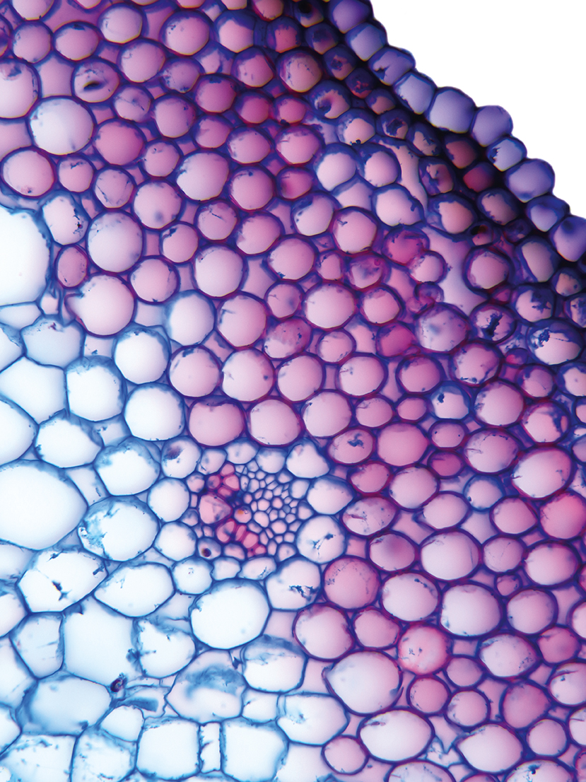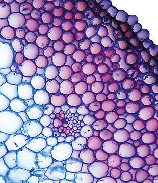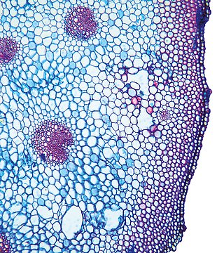 Culm-diameter 5-10 mm, center full, radius of culm in relation to wall thickness 1:1. Outline circular wavy. Culm-center full, containing unlignified cells. Without cortex/cylinder separation. Culm without endodermis but with a sheath of lignified cells a