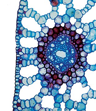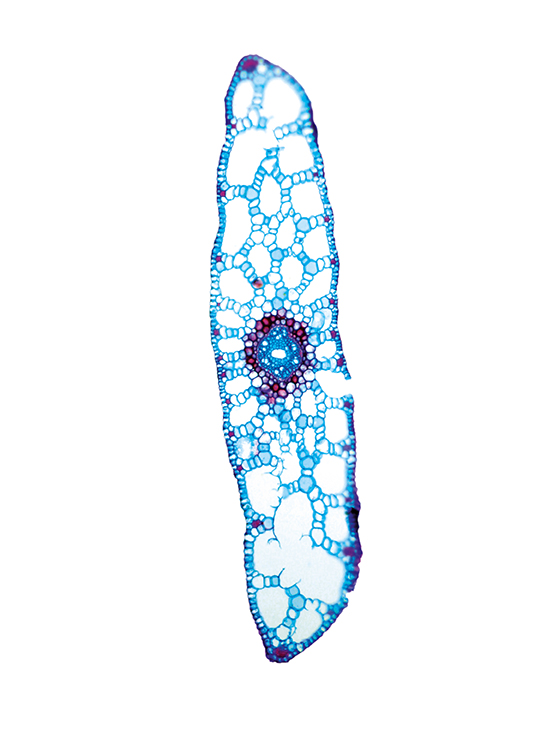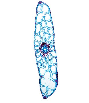 Culm-diameter 1-2 mm, center full, radius of culm in relation to wall thickness 1:1. Outline oval. Epidermis smooth. Epidermis cells thin-walled all around. Endodermis cells thick walled all around. Groups of sclerenchyma at the periphery round. Sometime