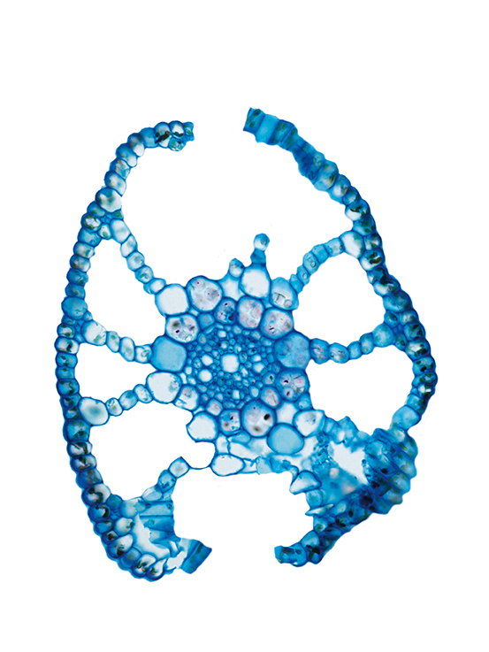 Culm-diameter 0.5-1 mm, center full, radius of culm in relation to wall thickness 1:1. Outline circular with a smooth surface. Epidermis smooth. Epidermis cells thin-walled all around. Chlorenchyma present, continuous peripheral belt with unlignified rou