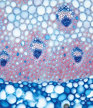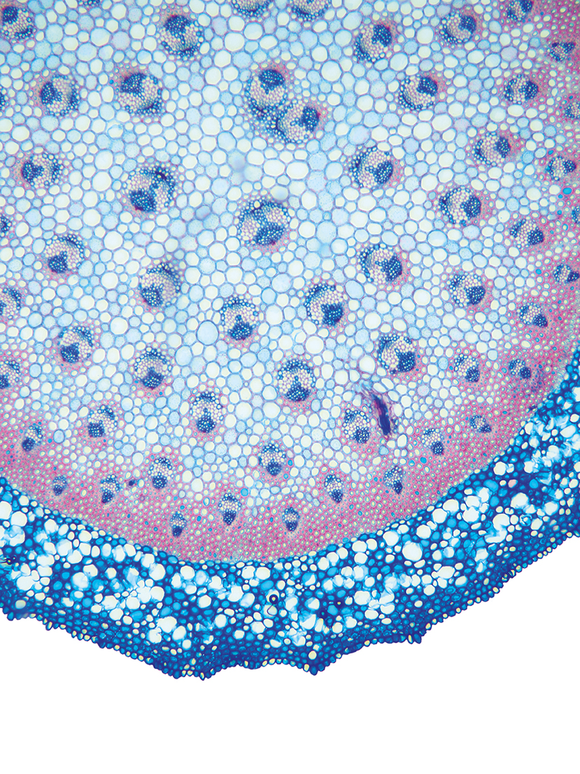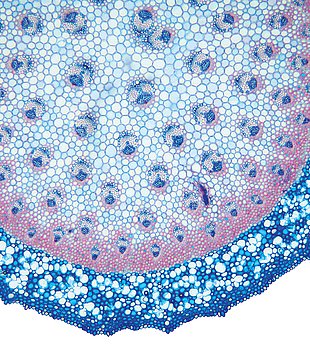 Culm-diameter 2-5 mm, center full, radius of culm in relation to wall thickness 1:1. Outline circular wavy. Culm-center full, containing unlignified cells. Culm without endodermis but with a sheath of lignified cells around the center. Epidermis cells thi