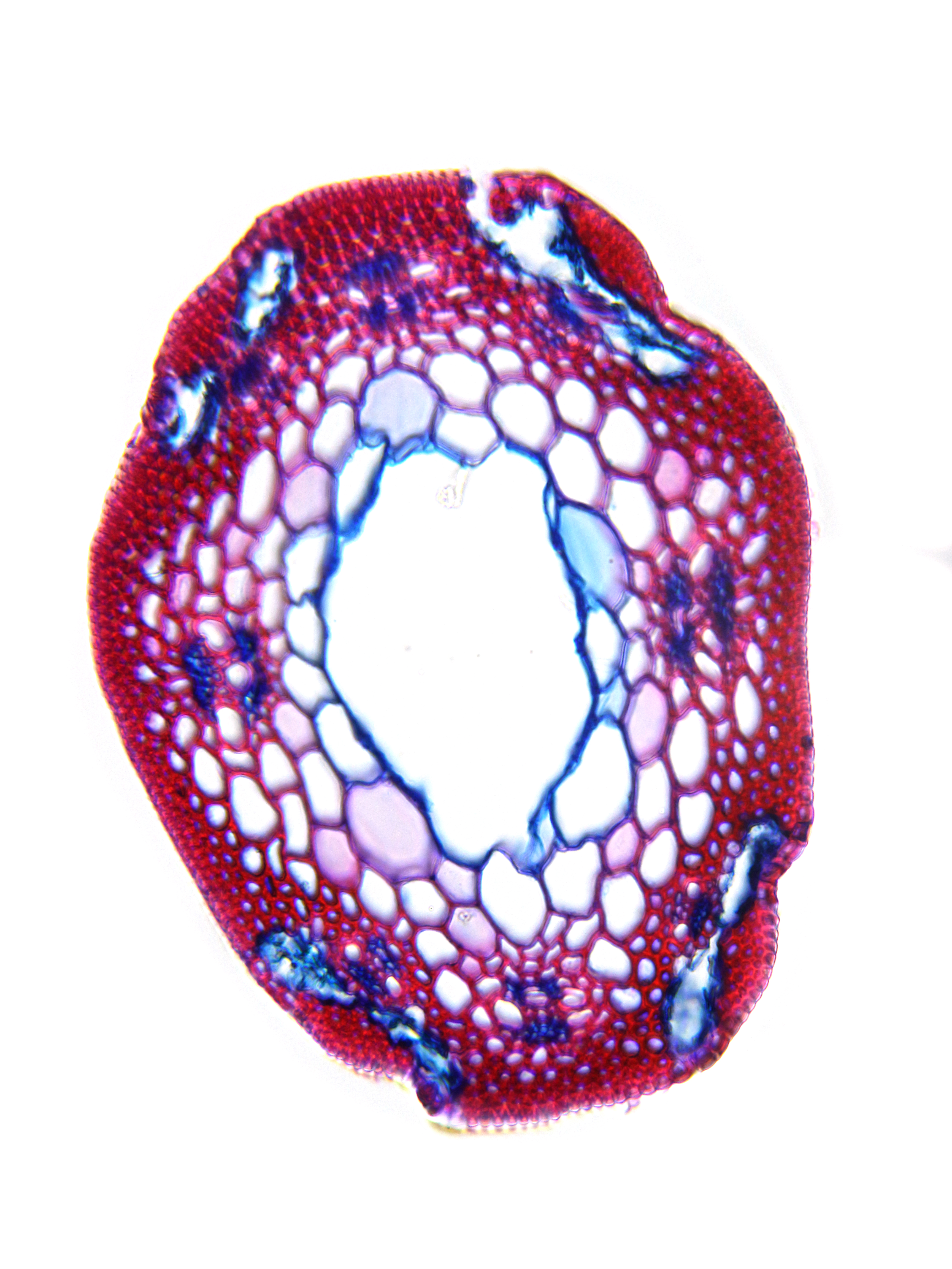 Culm-diameter < 0.5 mm, wall very large, radius of culm in relation to wall thickness approximately 1:0.75. Outline circular with a smooth surface. Culm-center hollow and surrounded by a few thin-walled, not lignified cells. Epidermis-cells thick-walled a