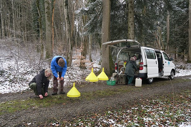 Im März wurden die Insektenfallen für das Lotharprojekt installiert, damit auch früh fliegende Insekten erfasst werden.