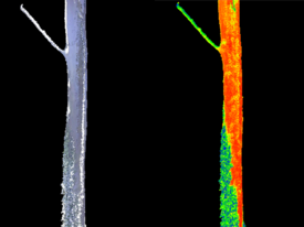 Estimation of the economic and ecological value of trees or forest stands is one of the core objectives of the Swiss NFI. The ecological value of a tree can be assessed using surveys of microhabitats (i.e. cavities, fungi, epiphytic structures). However, assessing and measuring of microhabitats in the field is very time consuming and the results are difficult to reproduce. TLS can provide detailed and reproducible information on tree stem surfaces and structures, since it acquires data from surrounding objects with a very high level of detail.