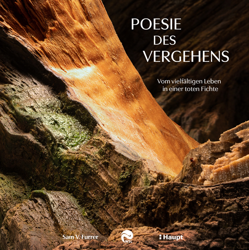 «POESIE DES VERGEHENS – Vom vielfältigen Leben in einer toten Fichte» enthüllt in 120 Bildern die Geschichte eines Baumes, der am Ufer des Vierwaldstättersees im Herzen der Schweiz gestrandet ist. Die Fotografien von Sam V. Furrer erkunden die zarten Details des Holzes, die Spuren seiner Bewohner sowie das Spiel von Licht und Schatten im Innern des morschen Baumstamms. Die Erläuterungen von Forschenden der Eidg. Forschungsanstalt WSL geben einen Einblick in eine vielfältige, aber meist verborgene Welt. Denn nichts ist lebendiger als Totholz: Insekten finden hier Lebensraum und Nahrung, Pilze beginnen ihr zersetzendes Werk, mysteriöse Schleimpilze entfalten ihre Fruchtkörper, Jahrringe erzählen Geschichten von guten und schlechten Zeiten. Im scheinbaren Stillstand spielt sich der Kreislaufdes Lebens ab, der die Komplexität der Natur widerspiegelt. Das Buch schlägt eine Brücke zwischen Wissenschaft undKunst und richtet sich an wissenschaftlich Interessierte, Naturliebende, Kunstaffine und Fotografiefans.