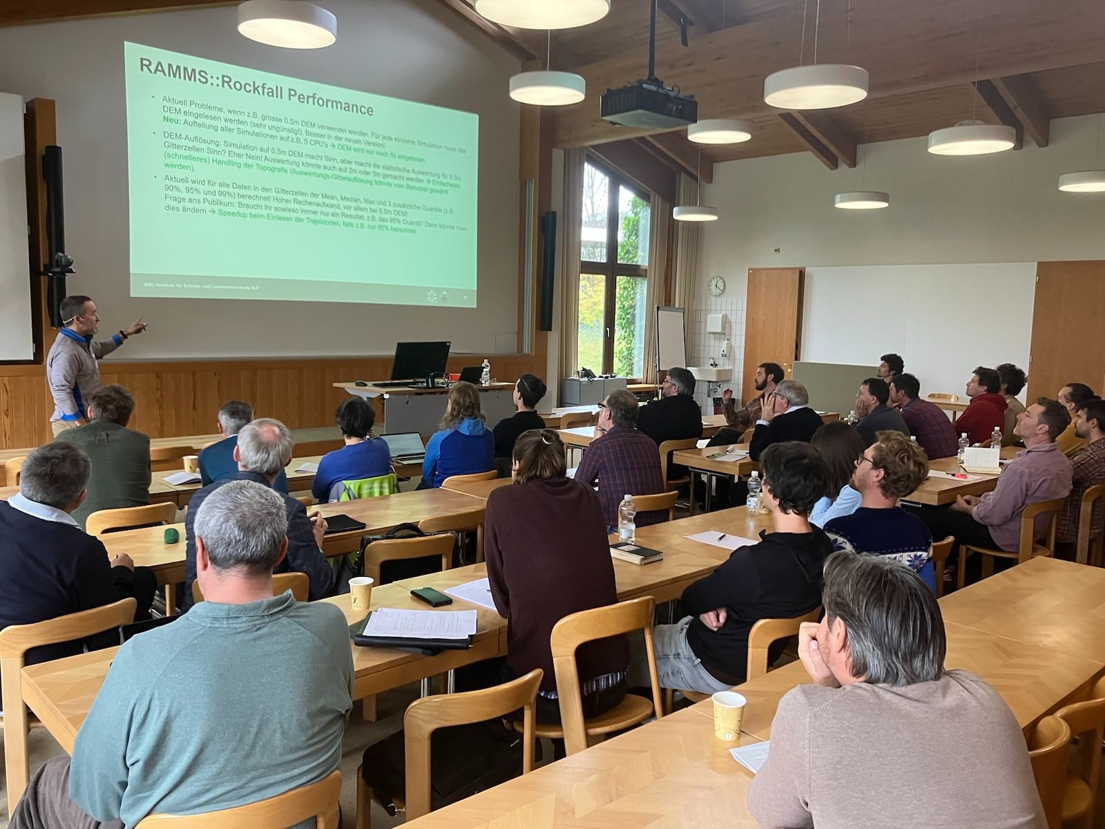 Last week, the RAMMS team invited natural hazard practitioners from Switzerland, Germany and Austria to an XChange workshop on rockfall. The aim of the workshop was to present new research findings from the last 5 years, which have led to a major update of the RAMMS::Rockfall software. The new rockfall software will be released in early 2024. The key new features presented were: