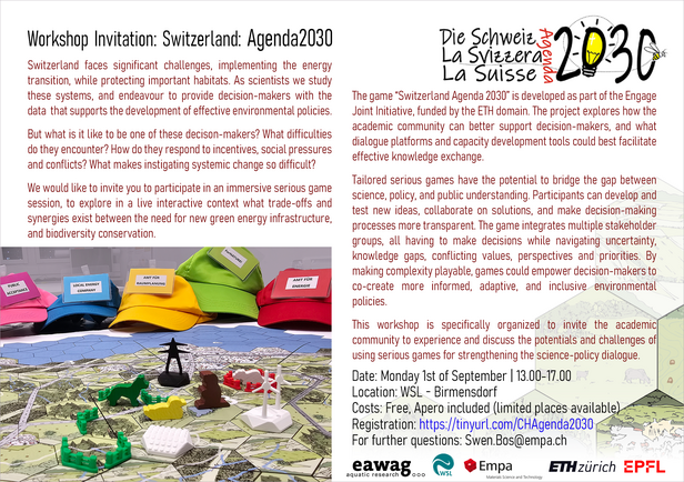 Workshop: Switzerland Agenda2030 Datum: 1. September 2025, 13:00 - 17:00 Ort: Birmensdorf, Englersaal Sprache(n): English Veranstaltungstyp: Kurse Anmeldung »