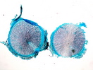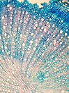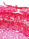 Morphology H, 10 - 30cm Ecology hill and mountain zone, medium site Chorology European Xylem Only one ring, vessels solitary and in short radial multiples, simple perforation, vessel diameter <30-50 µm, fibers with large pits, indistinct parenchyma, rays uniseriate, all cells upright, crystals absent. Xylem-Code Phloem Uniform cortex, without ray dilatations, without oil ducts. Explanations For explanations please see the Feature Characteristics. | Cross section Tangential section Bark | |
