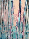 Morphology N, 1,5 - 2m Ecology subtropical, coast Chorology Macaronesia Xylem Indistinct rings, vessel solitary and in short radial multiples, simple perforation, vessel diameter 50-70µm, partially scalariform intervessel pits, fibers thin-walled, apotracheal parenchyma often in uniseriate tangential rows, round vessel-ray pits, homocellular rays width 1-2 cells upright cells. Xylem-Code Phloem With radial groups of sieve tubes, with lactifers. Large phellem. Explanations For explanations please see the Feature Characteristics. | Cross section Tangential section Radial section Bark | |
