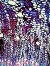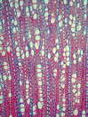 Morphology Z, 30-50 cm Ecology hyperarid zone Chorology Sahara Xylem Indistinct rings, vessel in tangential and radial multiples, simple perforations, vessel diameter 30-70 µm, scalariform intervessel pits, fibers thin-to thick-walled, rare paratracheal parenchyma, round and scalariform vessel-ray pits, mostly homocellular rays with upright cells, rarely heterocellular with a few prostrate cells. Xylem-Code Phloem Indistinct ray dilatations, with radial sclerenchymatic groups with lactifers. Explanations For explanations please see the Feature Characteristics. | Cross section Tangential section Radial section Bark | |