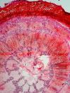Morphology H, 10 - 40cm Ecology hill and mountain zone, medium site Chorology European Xylem Distinct rings, semi-ring porous, vessel in radial multiples and in clusters, simple perforation, earlywood vessel diameter 30-40µm, round intervessel pits, fibers thin-to thick-walled, mainly pervasive parenchyma , round vessel-ray pits, homocellular unlignified rays ray width 1-2 cells with upright cells. Xylem-Code Phloem Uniform phloem, with lactifers. Explanations For explanations please see the Feature Characteristics. | Cross section Tangential section Radial section Bark | |