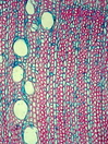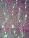 Morphology shrub, 1-2 m Ecology arid zone Chorology Arabia SW-Africa Xylem Distinct rings, semi-ring-porous, vessel in radial multiples, simple perforation, earlywood vessel diameter 70-90µm, round intervessel pits, fibers thin-to thick-walled, paratracheal and apotracheal parenchyma, often one row of marginal parenchyma, round vessel-ray pits, homocellular uniseriate, rays with upright cells. Xylem-Code Phloem Phloem and cortex with irregular tangential bands of sclereids, with a few lactifers. Explanations For explanations please see the Feature Characteristics. | Cross section Tangential section Radial section Bark | |