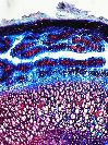 Morphology H, 10-20cm Ecology Cold steppe, montane, dry site Chorology Colorado, USA Xylem Distinct rings, semi-ring porous, vessels solitary, tangential rows of vessels, vestured pits, tangential bands with thick walled fibers, paratracheal parenchyma, thin walled parenchyma between vessels, rayless in cross-section, rayless. Xylem-Code Phloem No tangential layers of collapsed sieve cells, tangential layers of sclerenchymatic groups, radial rows of parenchyma cells, groups of sclereids in primary bark. Remarks Cross section: Explanations For explanations please see the Feature Characteristics. | Cross section Tangential section Bark | |