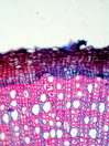 Morphology Z, 30-50 cm Ecology hill and mountain zone, dry site Chorology SE Europe Xylem Distinct rings, semi-ring-porous, vessel solitary simple perforation, vessel diameter 30-50µm, round intervessel pits, fibers thin-to thick-walled, (with tension wood) rare apotracheal parenchyma, round a vessel-ray pits, uniseriate, homocellular upright cells. Xylem-Code Phloem Simple structured phloem.Without lactifers. Explanations For explanations please see the Feature Characteristics. | Cross section Tangential section Radial section Bark | |
