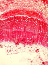 Morphology H, 10 - 40cm Ecology hill and mountain zone, medium site Chorology European, S-W-Asian Xylem Distinct rings, vessels solitary, simple perforation vessel diameter 20-40µm, round intervessel pits, fibers thin-to thick-walled, indistinct parenchyma, rayless. Xylem-Code Phloem Phloem with dilatations, groups and bands of sclereids in tangential rows, many crystal druses and also crystal sand. Without lactifers. Explanations For explanations please see the Feature Characteristics. | Cross section | |