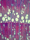 Morphology N, 1,5 -3m Ecology hill and mountain zone, medium site Chorology E-Asia Xylem Distinct rings, ring porous, vessesl solitary and in short radial multiples, simple perforation, vessel diameter 60-90µm round pits, fibers thin-to thick-walled, rare apotracheal parenchyma, round vessel-ray pits, homocellular 2-4 seriate rays upright cells. With prismatic crystals in rays. Xylem-Code Phloem Uniform phloem with prismatic crystal. Without lactifers. Explanations For explanations please see the Feature Characteristics. | Cross section Tangential section Radial section Bark | |
