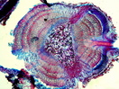 Morphology H, 5-10 cm Ecology mediterranean Chorology European Xylem Distinct rings, semi-ring porous, vessels solitary, simple perforations, intervessel pits round, vessel diameter 20 ¿ 30 µm, with septate fibers, parenchyma rare or not to recognize, crystals absent. Stem lobed Xylem-Code Phloem Uniform phloem and cortex. Crystals druses in the cortex and the pith. Explanations For explanations please see the Feature Characteristics. | Cross section Tangential section Radial section Bark | |