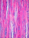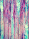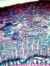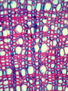Morphology Z, 30-50 cm Ecology subalpine forest Chorology Rocky Mountains Xylem Distinct rings, semi-ring porous, earlywood vessels solitary, simple perforations, vessel diameter 30-50µm, with helical thickenings, fibers with large pits, without septate fibers, axial parenchyma rare or apotracheal, rays 1-2 cells in width heterocellular with 1-3 rows of upright cells, crystals absent. Xylem-Code Phloem Uniform structure, parenchyma and sieve tubes look similar. Large crystal druses. Explanations For explanations please see the Feature Characteristics. | Cross section Tangential section Radial section Bark | |
