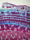 Morphology N 80-200 cm Ecology mediterranean garigue Chorology SW-european Xylem Distinct rings, semi-ring-porous, vessels grouped in dendritic patterns, simple perforations, vessel pits vestured, vessel diameter >50-100µm, fibers thick-walled, parenchyma vasicentric, ray width 1-3 cells, homocellular, procument sometimes with 1 row of square cells, parenchyma storied, crystals absent. Xylem-Code Phloem With sieve tube groups, tangential layers of sclerenchyma groups, crystals absent. Explanations For explanations please see the Feature Characteristics. | Cross section Tangential section Radial section Bark | |