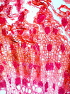 Morphology H, 10 - 40cm Ecology subalpine and alpine wet meadow Chorology Arctic-Alpine Xylem Distinct rings, semi-ring-porous, vessels solitary, vessels thick-walled, simple perforations, round intervessel pits, vessel diameter 40-70µm, fibers thick-walled, fiber groups in tangential rows, parenchyma vasicentric and confluent, ray width 2-5 cells, homocellular, prostrate cells, ray cells unlignified, crystals absent. Xylem-Code Phloem With sieve tube groups, and collapsed sieve tube groups with ray dilatations, radial rows of sclerenchyma groups, crystals absent. Explanations For explanations please see the Feature Characteristics. | Cross section Bark | |