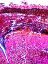 Morphology H, 3-7cm, cushion plant Ecology Alpine, medium site Chorology Colorado, North American Xylem Distinct rings, semi-ring porous, vessels solitary and in little groups, scalariform perforations, vestured pits, thin walled marginal parenchyma, paratracheal parenchyma, rayless. Xylem-Code Phloem Tangential layers of collapsed sieve cells, radial rows of parenchyma cells, no sclereids. Remarks Cross section: Explanations For explanations please see the Feature Characteristics. | Cross section Bark | |