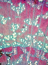 Morphology Z, 30-50 cm Ecology hill dry meadow Chorology S-European Xylem Distinct rings, semi-ring-porous, vessels grouped in diagonal and dendritic patterns, simple perforations, with helical thickenings, vessel diameter >30-70µm, with dark staining substances,fibers thin to tick-walled, parenchyma vasicentric and terminal, ray width 1-3 (4) cells , homocellular procument, crystals absent. Xylem-Code Phloem With dilatations, and tangential blocks of sclerenchyma cells. Explanations For explanations please see the Feature Characteristics. | Cross section Tangential section Bark | |