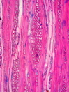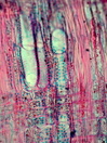 Morphology Z, 30-50 cm Ecology hill dry meadow Chorology S-European Xylem Distinct rings, semi-ring-porous, vessels diagonal, simple perforations, vessel diameter 40 – 50µm, with helical thickenings, with vestured intervessel pits, fibers thick-walled, parenchyma vasicentric and terminal, ray width 2 -5 cells, heterocellular with a few square cells. Xylem-Code Phloem With ray dilatations, with tangential blocks of sclerenchyma cells. Explanations For explanations please see the Feature Characteristics. | Cross section Tangential section Radial section Bark | |