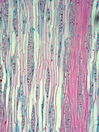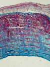 Morphology Z, 30-50 cm Ecology hill and mountain meadow Chorology SW-european Xylem Distinct rings, semi-ring-porous, vessels dendritic patterns, simple perforations, vessel diameter 40 – 70µm, with helical thickenings, with vestured intervessel pits, fibers thick-walled, parenchyma vasicentric and terminal, ray width 2-3 (4) cells, homocellular with procumbent cells. Xylem-Code Phloem With ray dilatations, small strips of tangential sclerenchyma cells. Explanations For explanations please see the Feature Characteristics. | Cross section Tangential section Radial section Bark | |