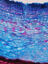 Morphology c 20-40 cm Ecology hill and mountain dry meadow Chorology S-European Xylem Distinct rings, semi-ring-porous, vessels diagonal patterns, simple perforations, vessel diameter 40 – 60µm, with helical thickenings, with vestured intervessel pits, fibers thick-walled, parenchyma vasicentric and terminal, ray width 2-3 (4) cells, heterocellular with 1-2 square cells cells. Xylem-Code Phloem With ray dilatations, small scattered groups strips of sclerenchyma cells. Explanations For explanations please see the Feature Characteristics. | Cross section Tangential section Radial section Bark | |