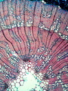 Morphology c 20-40 cm Ecology hill and mountain meadow Chorology S-European Xylem Distinct rings, semi-ring-porous, vessels diagonal patterns, simple perforations, vessel diameter 30 – 50µm, with helical thickenings, with vestured intervessel pits, fibers thick-walled, parenchyma vasicentric and terminal, ray width 2-4)cells, heterocellular with 1-2 square cells. Xylem-Code Phloem With ray dilatations, tangentially arranged small scattered irregular groups of sclerenchyma cells. Explanations For explanations please see the Feature Characteristics. | Cross section Tangential section Bark | |