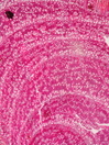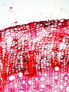 Morphology H, 10 - 30cm Ecology mountain and subalpine maccia Chorology European Xylem The structure is very variabe. Distinct rings, semi-ring-porous, vessels solitary and in small groups arranged in tangential and diagonal patterns, simple perforations, vessel diameter 30 – 40µm, round and slightly scalariform intervessel pits, fibers thick-walled fiber, parenchyma vasicentric and apotracheal rays with 1-3 cells in width, heterocellular with many square and upright cells. Xylem-Code Phloem With ray dilatations, tangentially arranged more or less dense bands of sclerenchyma cells. Explanations For explanations please see the Feature Characteristics. | Cross section Tangential section Bark | |