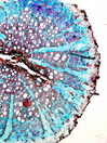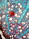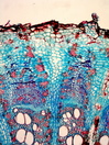 Morphology H, 10 - 40cm Ecology hill and mountain meadow Chorology European Xylem Distinct rings, semi-ring porous, vessels solitary, simple perforations, vessel diameter 50-80µm, with round and vestured intervessel pits, groups of fibers fibers thick-walled, parenchyma vasicentric ray width 4-8 cells, more or less homocellular with square cells with prismatic crystals. Xylem-Code Phloem With tangential bands of collapsed sieve tubes, with ray dilatations, irregular small groups of thick-walled sclerenchyma cells, with prismatic crystals. Explanations For explanations please see the Feature Characteristics. | Cross section Tangential section Radial section Bark | |