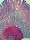 Morphology H, 10 - 30cm Ecology subtropical, coast on rock Chorology Macaronesia Xylem Distinct rings, semi-ring-porous, vessels solitary and in small radialgroups arranged in tangential patterns, simple perforations, vessel diameter 30 – 50µm, round intervessel pits, fibers thick-walled, parenchyma vasicentric and apotracheal rays with 1-8 cells in width, homocellular with many square and upright cells, prismatic crystals in rays. Xylem-Code Explanations For explanations please see the Feature Characteristics. | Cross section Tangential section Radial section | |