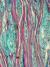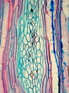 Morphology H, 40 - 80cm Ecology subalpine and alpine Pinus canariensis forest Chorology S-European Xylem Distinct rings, semi-ring-porous, vessels groups arranged in tangential patterns, simple perforations, vessel diameter 30 – 50µm, round intervessel pits, fibers thick-walled, parenchyma vasicentric and apotracheal, rays with 5-12 cells in width, heterocellular with many square and upright cells, prismatic crystals in rays. Xylem-Code Phloem With ray dilatations, scattered sclerenchyma cells, many prismatic crystals. Explanations For explanations please see the Feature Characteristics. | Cross section Tangential section Bark | |