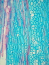 Morphology H, 10 - 30cm Ecology hill and mountain wet medow Chorology S-European Xylem Distinct rings, semi-ring-porous, vessels groups arranged in tangential patterns, simple perforations, vessel diameter 40 – 50µm, round intervessel pits, fibers thick-walled, parenchyma vasicentric and pervasive, rays with 3-9 cells in width, heterocellular with many square and upright cells. Xylem-Code Phloem With ray dilatations, scattered sclerenchyma cells, many prismatic crystals. Explanations For explanations please see the Feature Characteristics. | Cross section Tangential section Radial section Bark | |