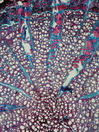 Morphology H, 10 - 40cm Ecology mountain and subalpine meadow Chorology W-American Xylem Distinct rings, semi-ring-porous, vessels in small groups, simple perforations, vessel diameter 40-50µm, round intervessel pits, fibers thick-walled, parenchyma vasicentric and marginal, rays with 5-8 cells, with sheet cells, homocellular with square and upright cells, with tangential bands of included phloem (latewood?). Xylem-Code Phloem Tangential oriented groups of sclerenchyma cells. Explanations For explanations please see the Feature Characteristics. | Cross section Tangential section Radial section Bark | |