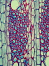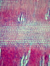 Morphology H, 40 - 80cm Ecology hill and mountain ruderal, dry site Chorology Eurasian Xylem Only one ring, vessels solitary and in radial multiples tangentially arranged, simple perforations, vessel diameter 50-70µm, with vestured intervessel pits, scalariform and round intervessel-pits, fibers thick-walled, parenchyma vasicentric and pervasive, ray width 5-12 cells, with sheet cells, heterocellular with many rows of square cells. With prismatic crystals around the rays. Xylem-Code Phloem With ray dilatations, with isolated sclerenchyma cells, with prismatic crystals. Explanations For explanations please see the Feature Characteristics. | Cross section Tangential section Radial section Bark | |