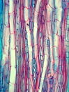 Morphology H, 10 - 40cm Ecology mountain and subalpine Abies forest Chorology SW-european Xylem Only one ring, vessels in short radial multiples, simple perforations, vessel diameter 40-50µm, with vestured intervessel pits, round intervessel-pits, thick-walled unlignified fibers, parenchyma mainly vasicentric, ray width 1-3 cells, homocellular with square and upright cells.. Xylem-Code Phloem With ray dilatations, radial strips of sieve tubes. With a few round groups of sclerenchyma. Explanations For explanations please see the Feature Characteristics. | Cross section Tangential section Radial section Bark | |