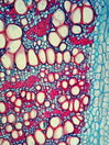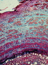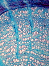 Morphology H, 10 - 40cm Ecology mountain zone Chorology SW-european Xylem Distinct rings, semi-ring-porous, many thick-walled vessels in groups, simple perforations, earlywood vessel diameter 50-80µm, with vestured intervessel pits, round and scalariform intervessel-pits, fibers rare, few thick-walled fibers, parenchyma mainly vasicentric, apotracheal, ray width 5-15 cells, with sheet cells, homocellular with square and upright cells. With a few prismatic crystals along large rays. Xylem-Code Phloem With ray dilatations, tangential rows of collapsed sieve tubes and sclereids. Explanations For explanations please see the Feature Characteristics. | Cross section Tangential section Radial section Bark | |