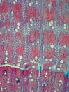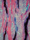 Morphology Z, 30-50 cm Ecology subtropical, coast meadow Chorology N-Africa Xylem Distinct rings, diffuse-porous, vessels in radial multiples tangentially arranged, simple perforations, vessel diameter 40-50µm, with vestured intervessel pits, round intervessel-pits, fibers thick-walled, parenchyma vasicentric , apotracheal in tangential aggregates and pervasive, ray width 5-8 cells, heterocellular with many rows of square cells. With many prismatic crystals in the rays and axial chambers. Xylem-Code Phloem With ray dilatations, radially arranged groups of sclerenchyma cells, with prismatic crystals. Explanations For explanations please see the Feature Characteristics. | Cross section Tangential section Radial section Bark | |