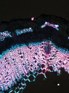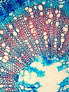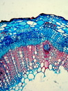 Morphology T, 5-20 cm Ecology thermophile zone abandonned land Chorology Macaronesia medeiterranean Xylem Only one ring vessels in radial multipels, simple perforations, vessel diameter 30-50µm, round intervessel-pits, fibers thick-walled, parenchyma vasicentric, ray width 1-3 cells, homocellular with square and upright cells, Xylem-Code Phloem Small sclerenchyma belt with very few prismatic crystals. Explanations For explanations please see the Feature Characteristics. | Cross section | |