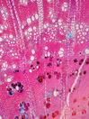 Morphology c 20-40 cm Ecology hill and mountain dry meadow Chorology S-European Xylem Distinct rings, semi-ring-porous, vessels in groups, tangentially arranged, simple perforations, vessel diameter 40-70µm, with vestured intervessel pits, round intervessel-pits, fibers thick-walled, parenchyma vasicentric, ray width 3-8 cells, heterocellular with a few rows of square cells, with prismatic crystals in rays Xylem-Code Phloem Radial arranged groups of sclerenchyma cells, with prismatic crystals. Explanations For explanations please see the Feature Characteristics. | Cross section Tangential section Radial section Bark | |