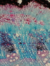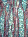 Morphology c 20-40 cm Ecology hill and mountain meadow Chorology W-European Xylem Distinct rings, semi-ring-porous, vesselssolitary, simple perforations, vessel diameter 40-70µm, with vestured intervessel pits, round intervessel-pits, fibers thick-walled, parenchyma vasicentric, apotracheal in tangential aggregate, ray width 4-11 cells, homocellular with slightly prostrate and square cells, with prismatic crystals Xylem-Code Phloem Small groups of sclerenchyma cells in tangential bands, with many prismatic crystals. Explanations For explanations please see the Feature Characteristics. | Cross section Tangential section Bark | |