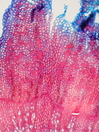 Morphology H, 10 - 30cm Ecology subalpine and alpine meadow Chorology Arctic-Alpine Xylem Distinct rings, semi-ring-porous, solitary,thick-walled vessels, simple perforations, earlywood vessel diameter 40-50µm, round and scalariform intervessel-pits, thick-walled fibers in groups, parenchyma mainly vasicentric, ray width 3-6 cells, unlignified, homocellular with square and upright cells. Xylem-Code Phloem With ray dilatations, tangential rows of sclereids. Explanations For explanations please see the Feature Characteristics. | Cross section Tangential section Bark | |